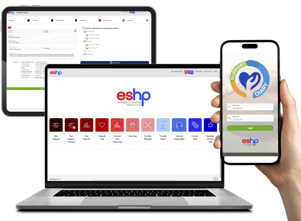 Developed since 2014 in partnership with multiple government emergency services, ESHP leverages real-time critical incident an CAD reports to triage response action. ESHP facilitates proactive and reactive support via counselling, peer networks, chaplaincy and all other additional support types and is specifically designed for use in emergency services such as ambulance, law enforcement, fire & rescue and telecommunications and dispatch.